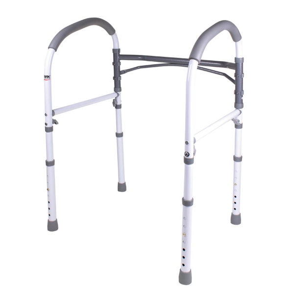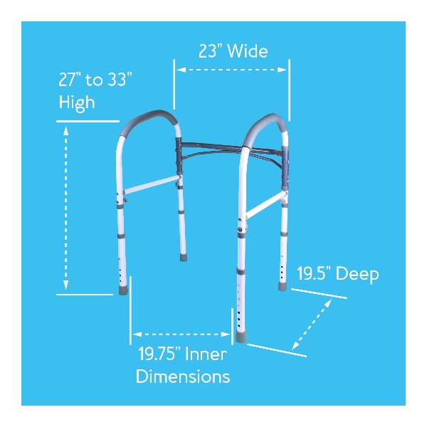 The Bathroom Safety Rail stands on its own without installation, so it can be used for added safety and stability all over the bathroom. The Bathroom Safety Rail easily fits around your toilet to provide safe support and assistance while sitting down or rising from the toilet.