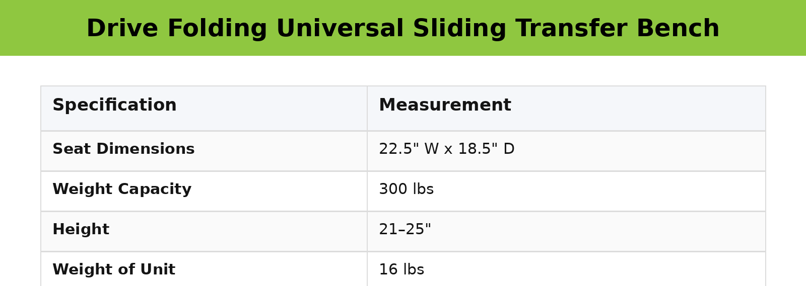 Drive Folding Universal Sliding Transfer Bench