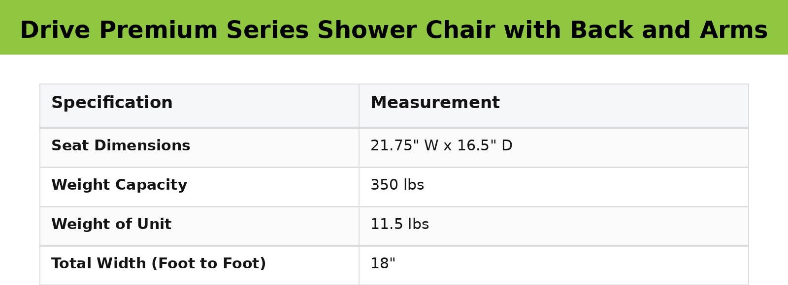 Drive Premium Series Shower Chair with Back and Arms