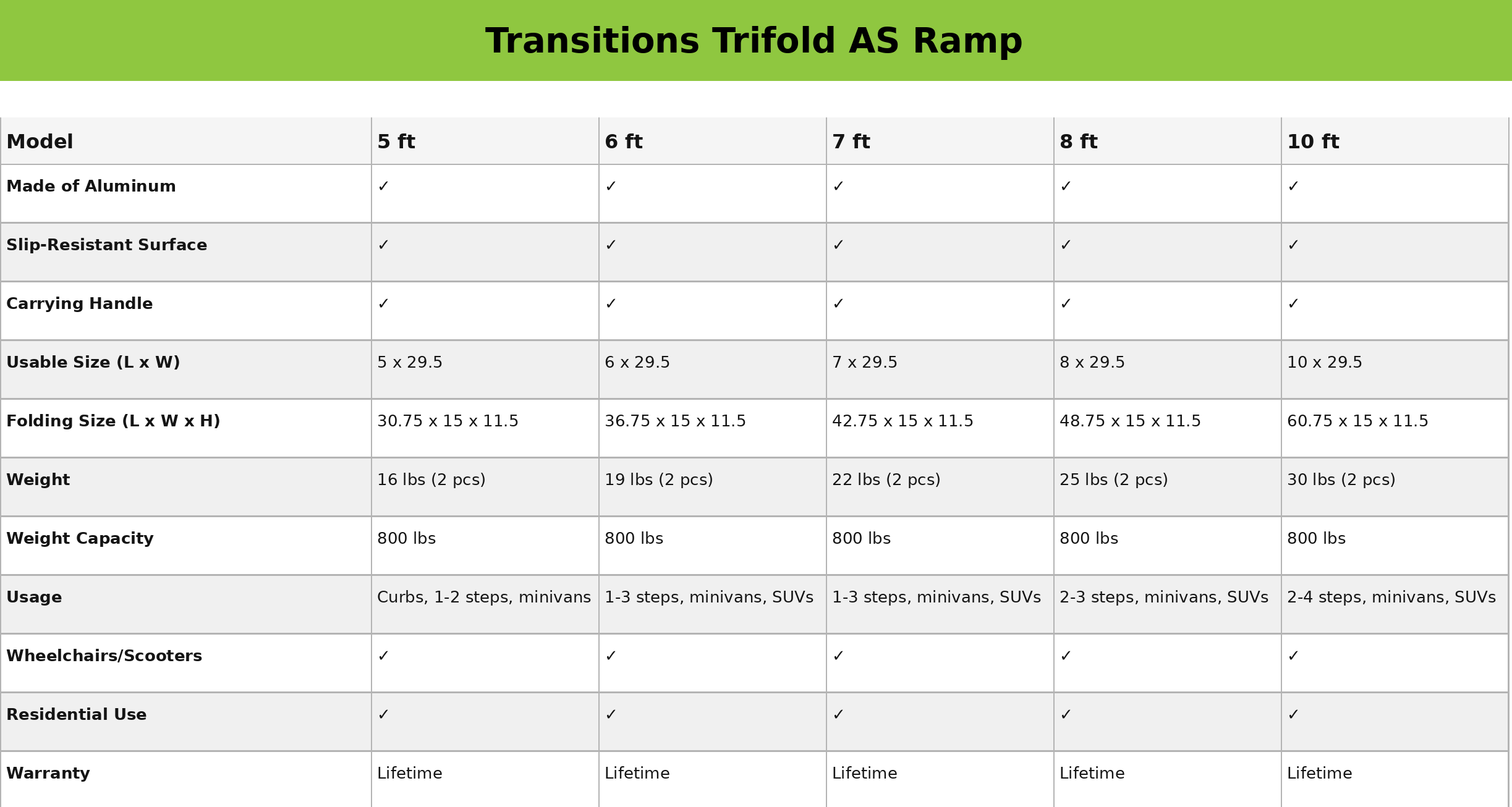Ramp lengths available: 5′, 6′, 7′, 8′, & 10′