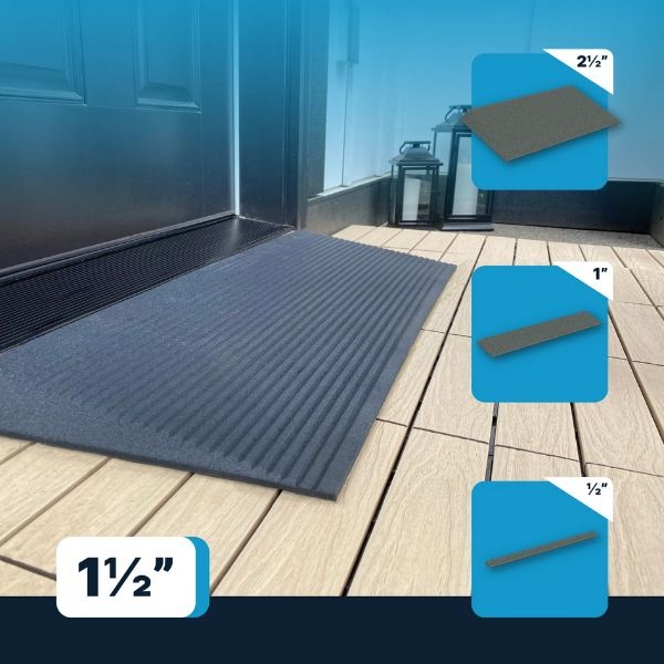 Available in heights ranging from 1/2″ to 2-1/2″ in quarter-inch increments, but trimming can be done to decrease the height of the mat to ensure an optimal fit. If necessary, the mat can also be notched to suit the doorjamb configuration or accommodate other obstructions.
