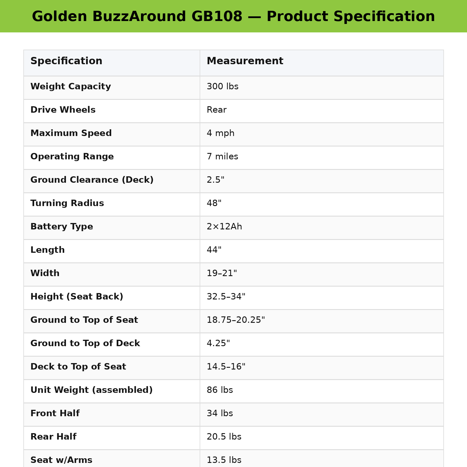 Golden Buzzaround LT GB108 4 Wheel Mobility Scooter