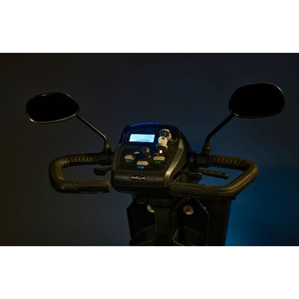 Golden’s popular Companion 4-wheel scooter has a sporty new look and upgraded comfort features! This next-generation model has a well-designed, wider infinite adjustable tiller with a digital dashboard featuring a percentage battery life indicator and water-resistant buttons on the control panel, plus two convenient cup holders.