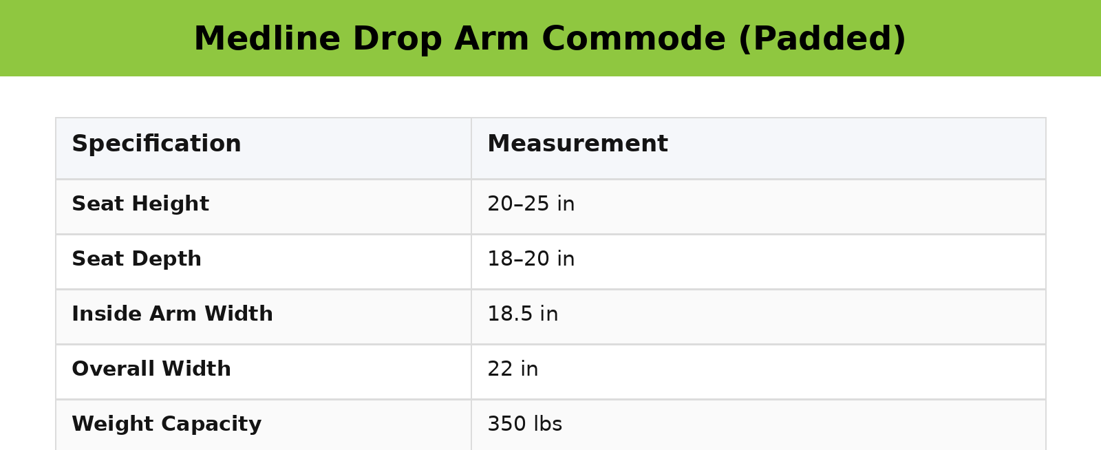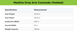 Medline Commode Drop Arm Padded Seat 350 LBS