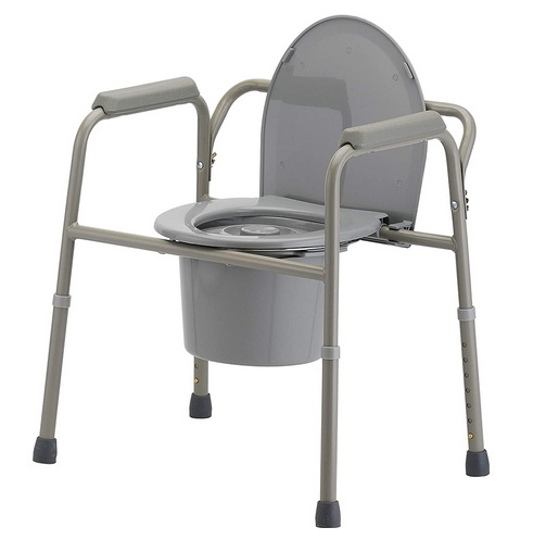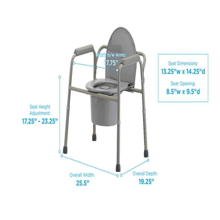 The 3 in 1 Commode is so versatile. It can be used as a bedside commode or as a toilet safety frame and elevated toilet seat over your existing toilet. It features a durable powder-coated welded frame. It has adjustable legs, along with a bucket, lid, and splash guard.