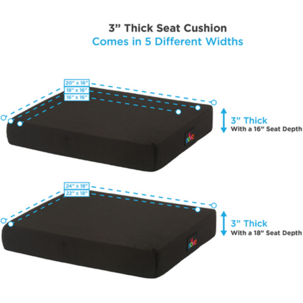 - CHOOSE THE PERFECT FIT & SIZE with the 2” thick (in 3 dimension sizes) and 3” thick (in 5 dimension sizes). From 16” x 16” to 18” 24” Extra Wide. See 8 total dimension options.