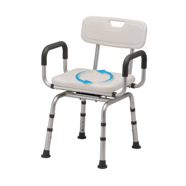 The Nova Swivel Bath Seat turns smoothly with just a pull of the lever, allowing users to enter and exit the chair with ease.